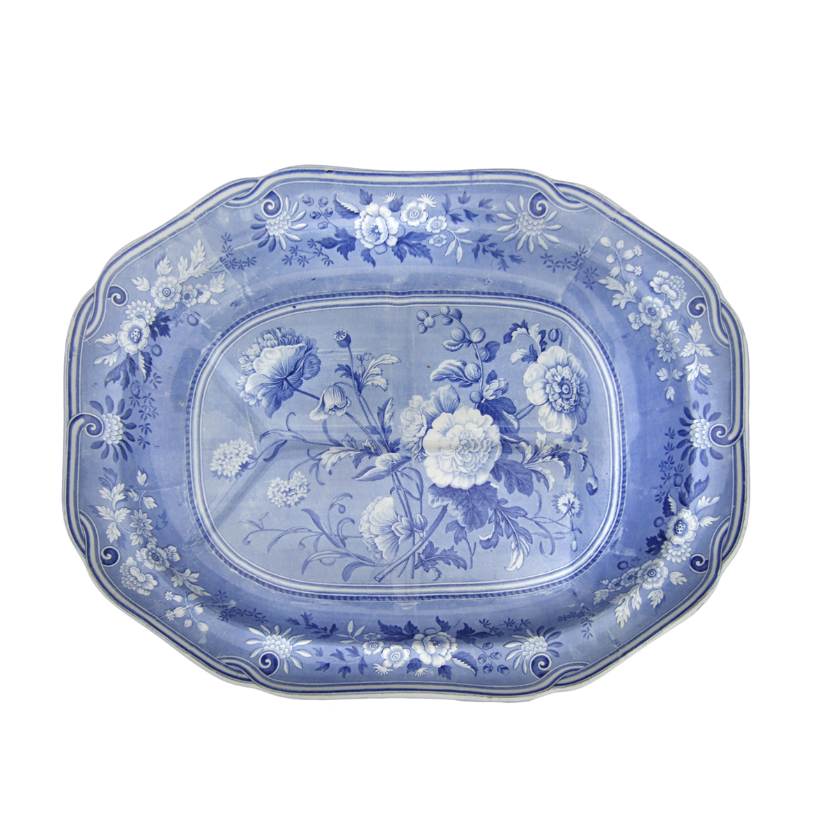 This fifth example of Spode's Botanical series is exhibited on an eathenware well and tree platter printed in blue underglaze. Drakard/Holdway Pattern Number P903-5 Mark Types and IDsImpressed 4 Transfer Printed 33 Workman's Mark Transfer Printed WMT 29