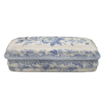 This example of the eleventh pattern in Spode's British Flowers series is exhibited on the lid of a razor box in blue underglaze. The pattern is a variation of British Flowers 3. Click on the image below for an enlarged view of the complete razor box. Mark Types and IDsTransfer Printed 33 Workman's Mark Transfer Printed WMT11 Blue