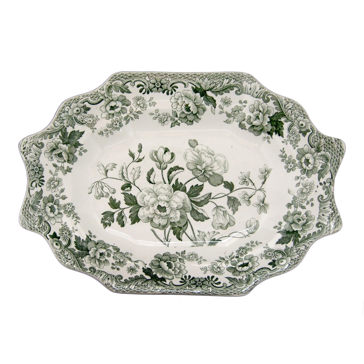 This example of the fourteenth pattern in Spode's British Flowers series is exhibited on an earthenware dessert dish in green underglaze. Mark Types and IDsImpressed 4 Workman's Mark Transfer Printed WMT 43