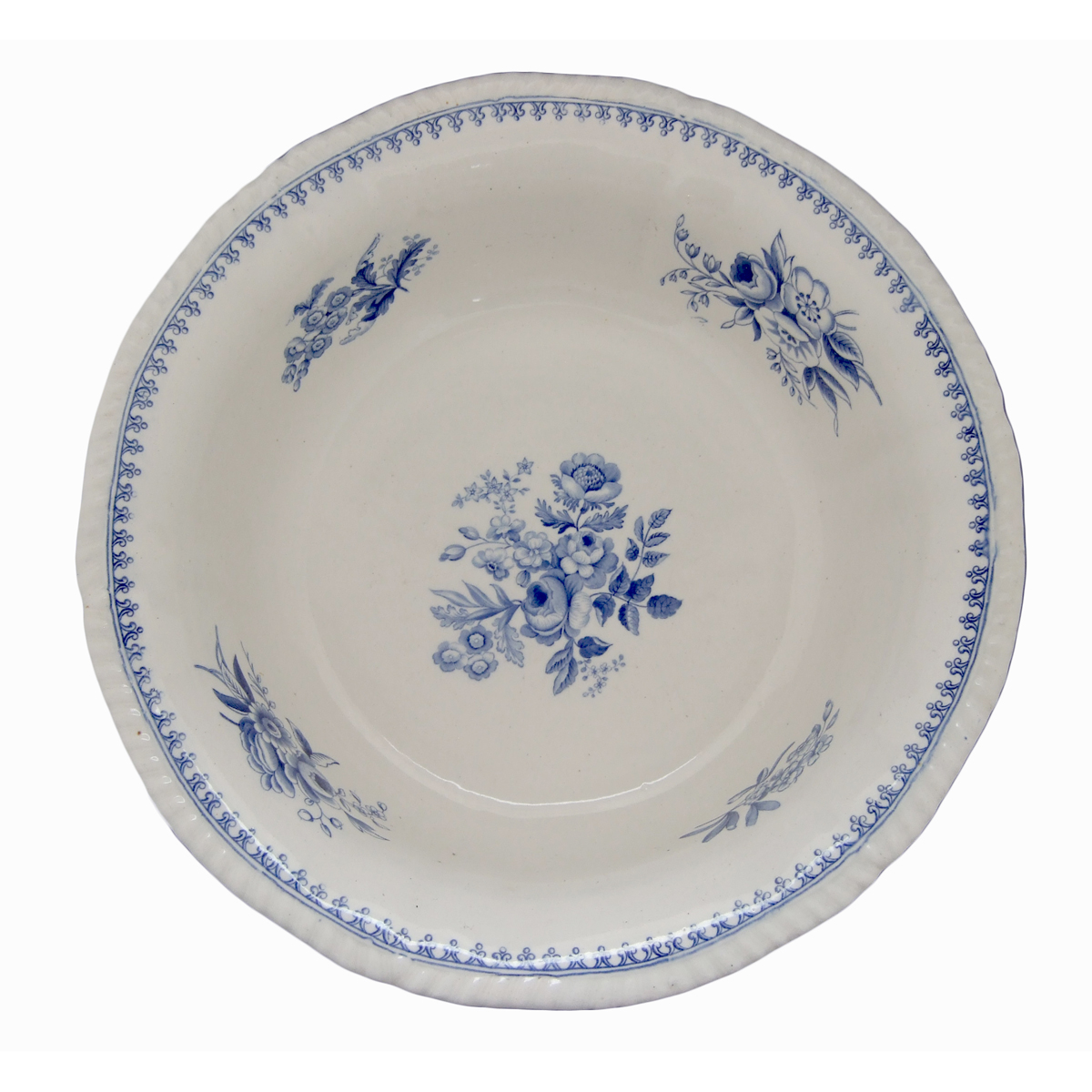 Exhibited on Spode's Imperial body is a hand bowl, with a gadrooned edge, printed in the Flower Sprays pattern in blue underglaze. Seven different sprays of flowers have been used as decoration. Click on the image below for an enlarged view of the hand bowl with its companion ewer.  Drakard/Holdway Pattern Number P835 Mark Types and IDsTransfer Printed 49