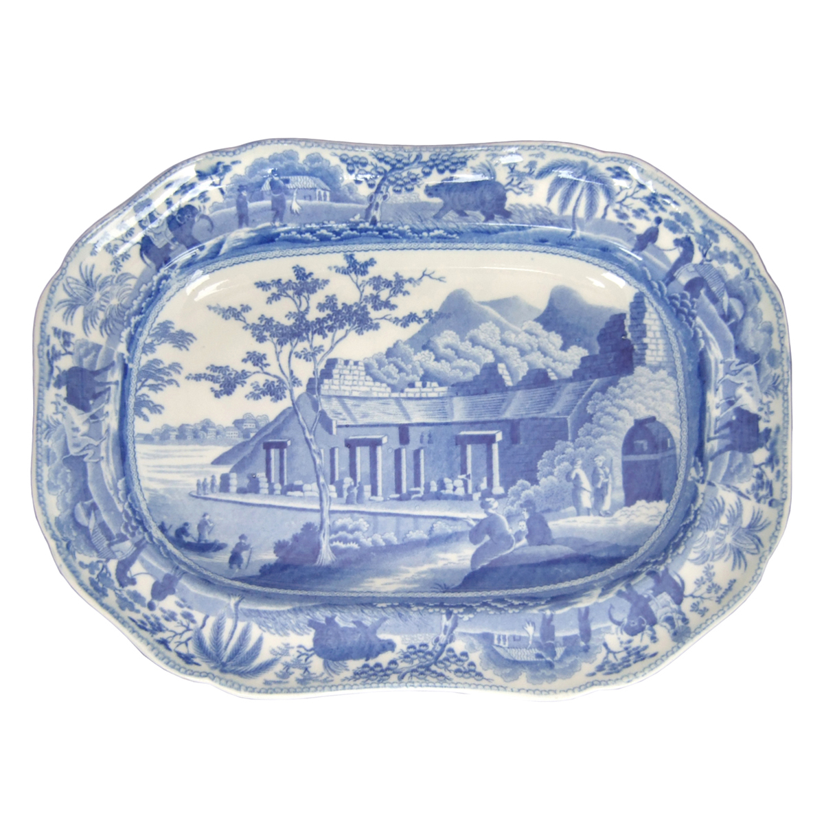 Shown on an earthenware indented platter printed in blue underglaze. Drakard/Holdway Pattern Number P905-7 Mark Types and IDsImpressed 3a Workman's Mark Transfer Printed WMT 22