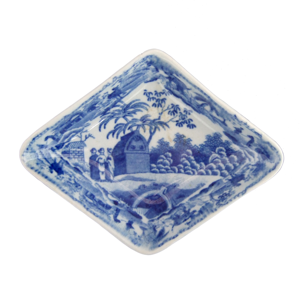 Shown on a lozenge shaped dish printed in blue underglaze. Drakard/Holdway Pattern Number P905-19 Mark Types and IDsTransfer Printed 31 Workman's Mark Transfer Printed WMT1