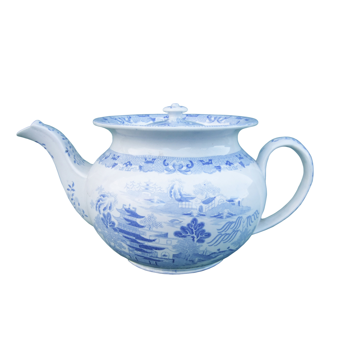 A large earthenware teapot printed in medium blue underglaze in the Broseley pattern. Mark Types and IDsTransfer Printed 33
