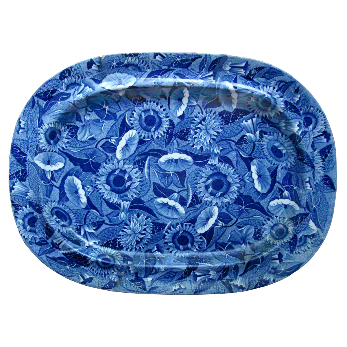 The pattern printed in blue underglaze on this large earthenware platter is Convulvulous, also known as Sunflower. Both flowers are featured in the design. Drakard/Holdway Pattern Number P819 Mark Types and IDsTransfer Printed 36