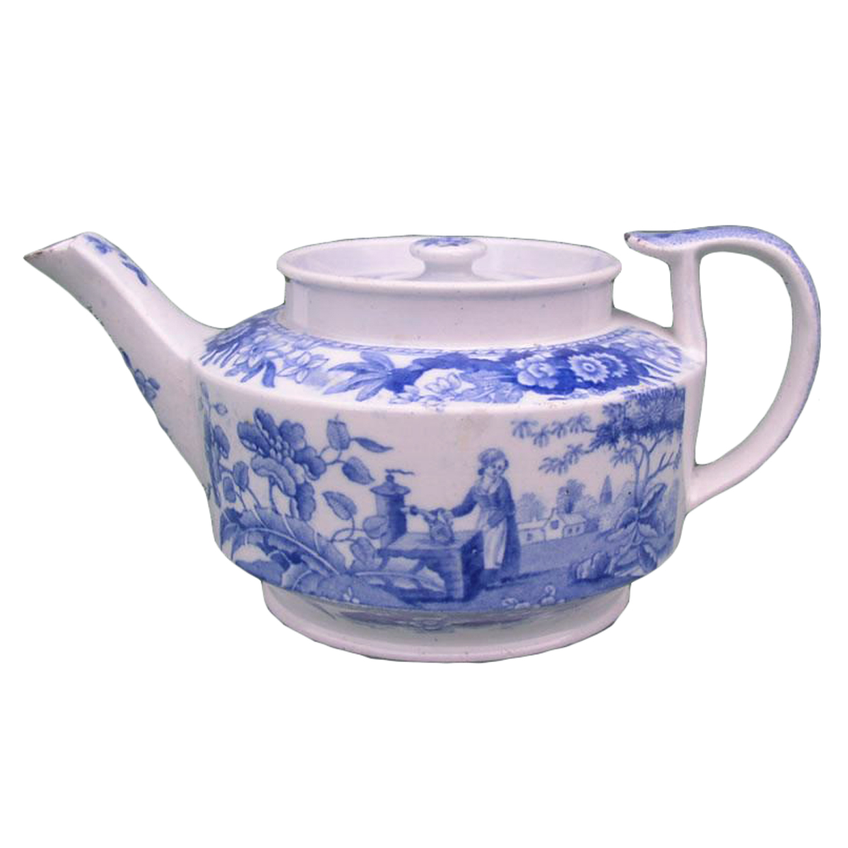 This child's size earthenware teapot was printed in blue underglaze in the Girl at the Well pattern. The top of the teapot is shown below. Click on it to enlarge. Drakard/Holdway Pattern Number P701 Mark Types and IDsTransfer Printed 33 Workman's Mark Transfer Printed WMT 6 Version 2 View Shape Book Page 76 »