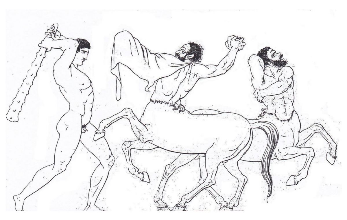 Tischbein, Vol. I, P.13. This was the only source for Centaurs Battling Theseus. Below is the blue printed example. |