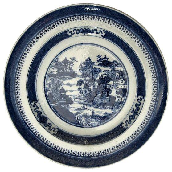 This Chinese export porcelain pattern was a source for Spode's P611-1, Temple Landscape second, and a variation of this pattern P611-2. The latter uses a similar border whereas the former is printed with a butterfly border. |